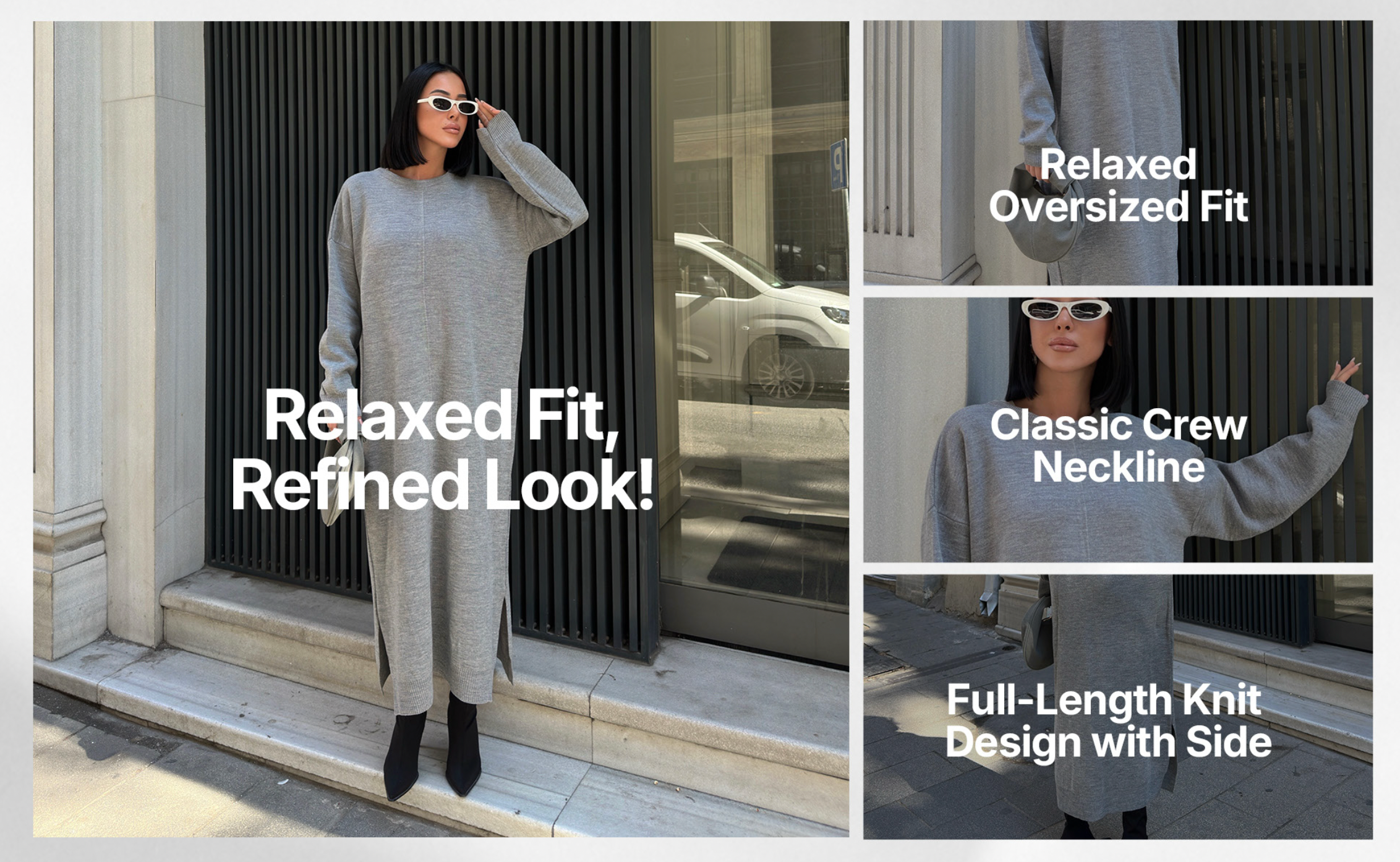 Beige Oversized Knit Maxi Dress – Women’s Long Sleeve Sweater Dress