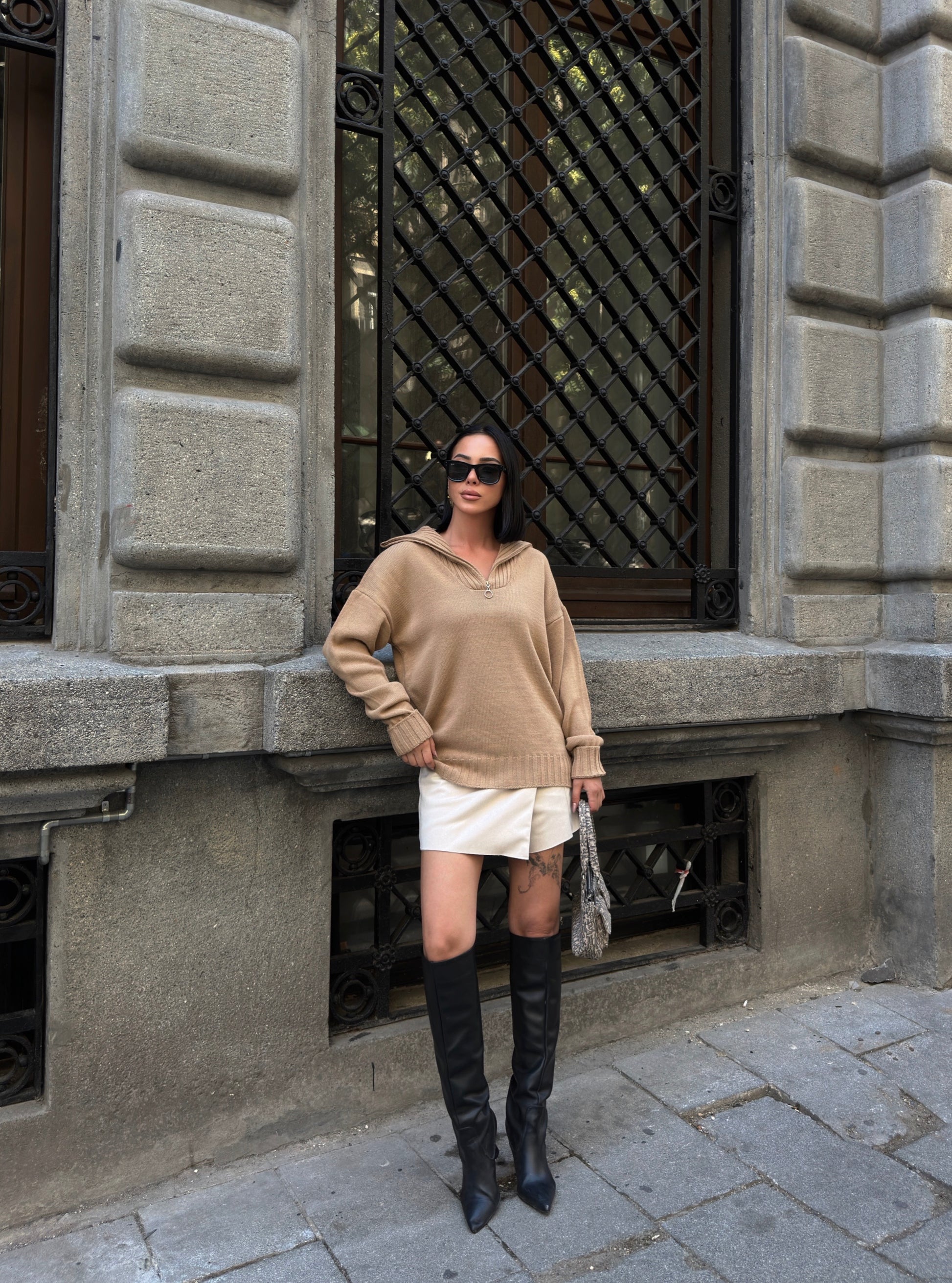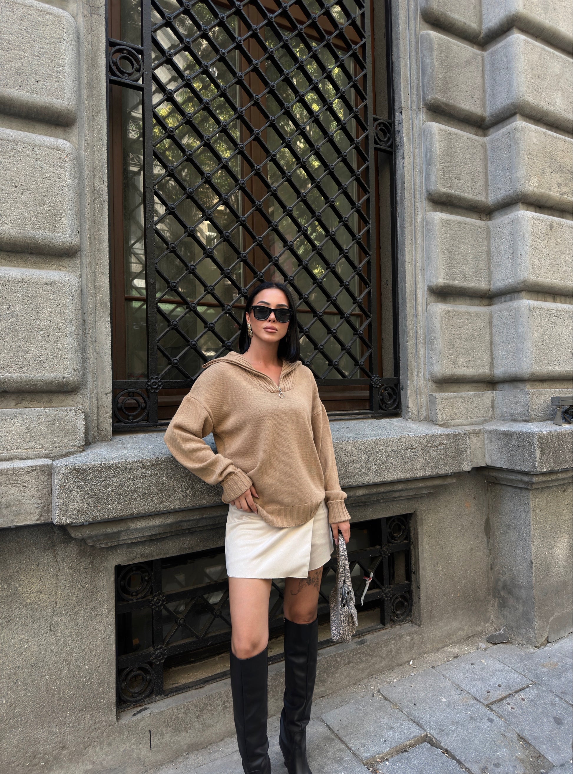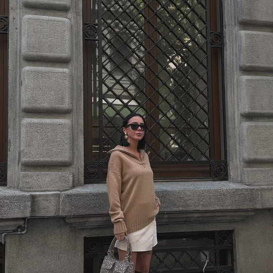 Casual Camel Half-Zip Sweater